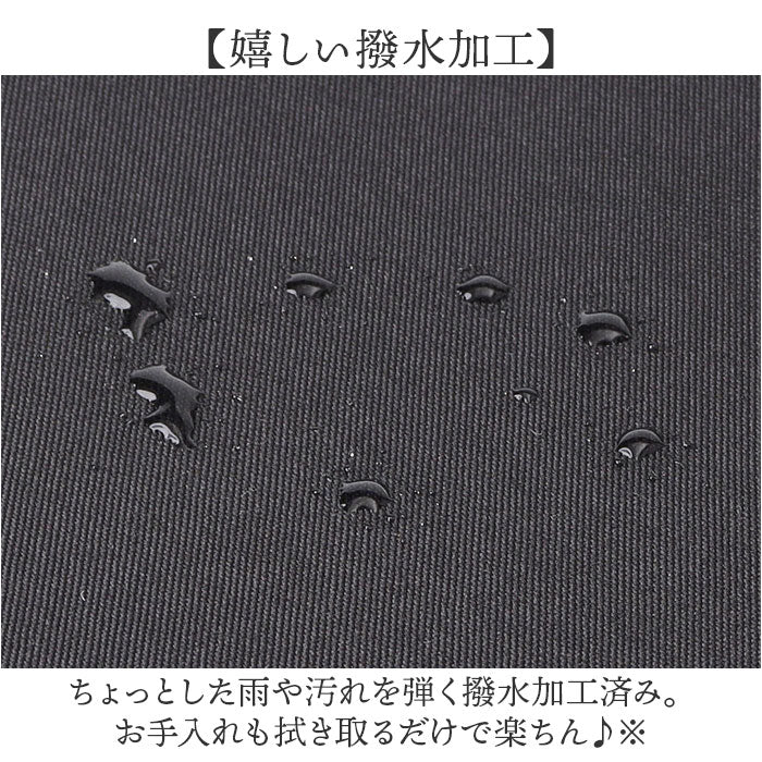 ・ちょっとした雨や汚れを弾く撥水加工済み。お手入れも拭き取るだけで楽ちん♪※