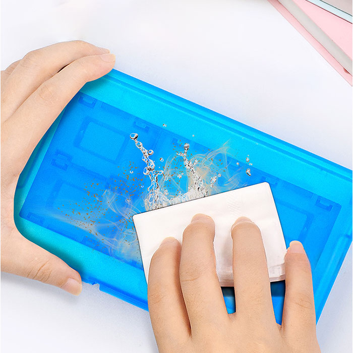 ・表面はハード素材で作られているから衝撃などからしっかりゲームカードやSDカードを守る♪
