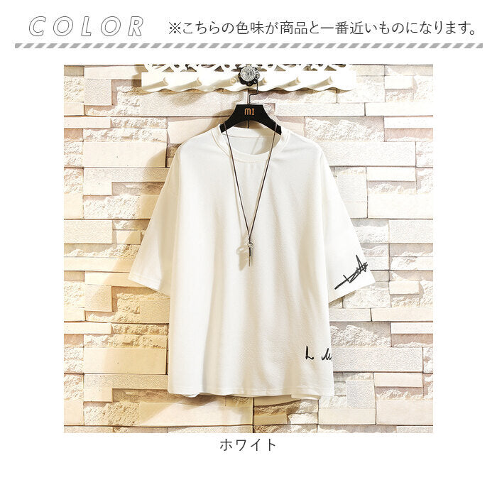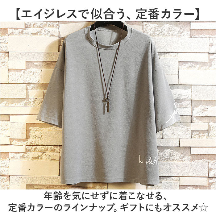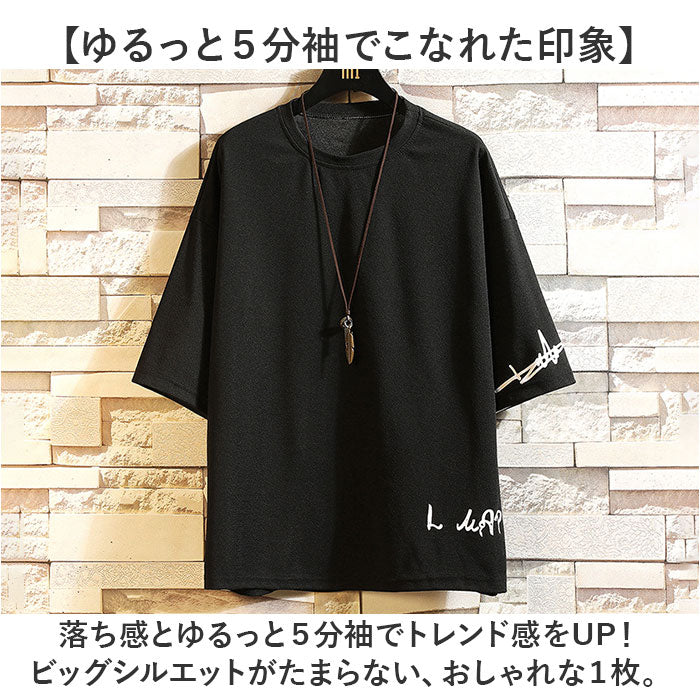 Tシャツ メンズ 5分袖 通販 ビッグtシャツ 半袖 おしゃれ 五分袖 オーバーシルエット ビッグシルエット ロゴ カットソー ロゴT シンプル カジュアル オシャレ ゆったり 春 夏 薄手