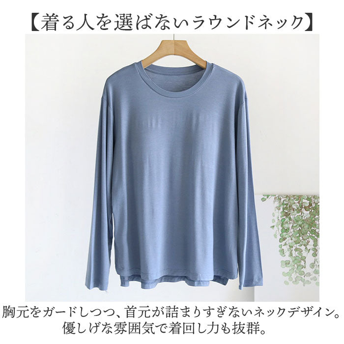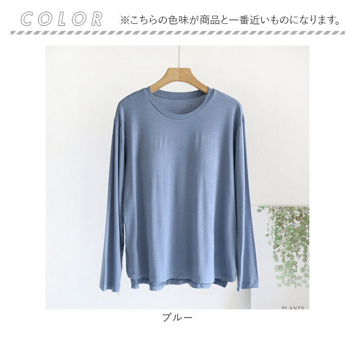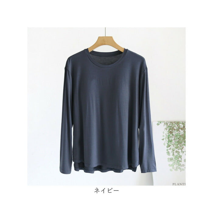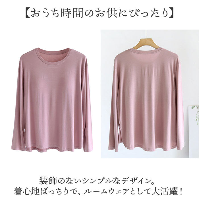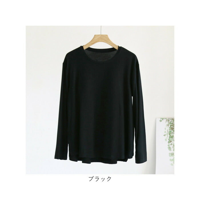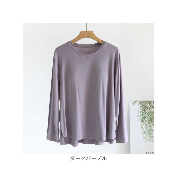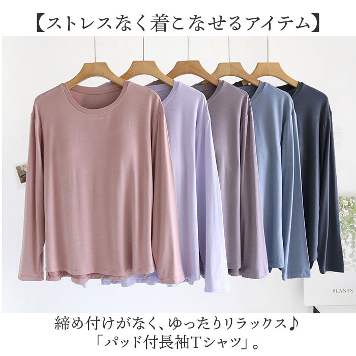 Tシャツ レディース パット付 通販 長袖 ロンT カップ付き 長袖Tシャツ ルームウェア 部屋着 インナー ラウンドネック トップス 長袖インナー きれいめ おしゃれ リラックス ゆったり