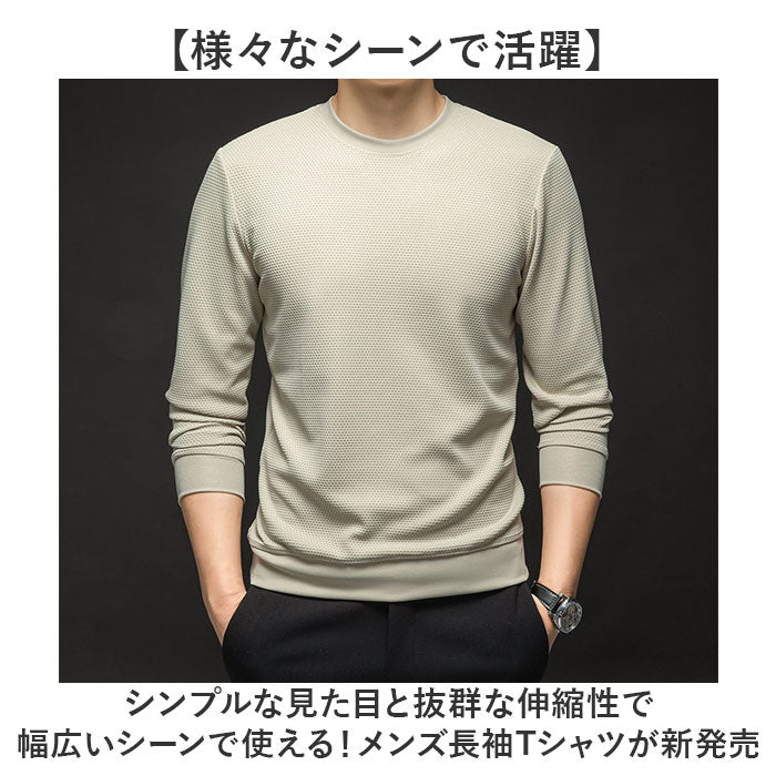 ・シンプルな見た目と抜群な伸縮性で幅広いシーンで使える!メンズ長袖Tシャツが新発売