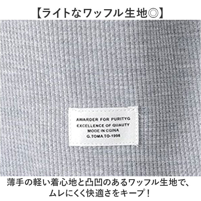 ・薄手の軽い着心地と凸凹のあるワッフル生地で、ムレにくく快適さをキープ!