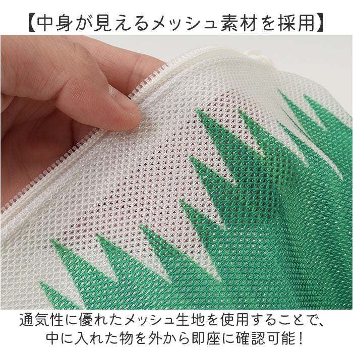 ・通気性に優れたメッシュ生地を使用することで、中に入れた物を外から即座に確認可能!