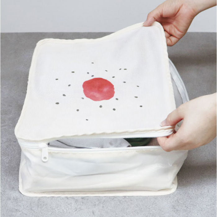 ・五つの異なるサイズがセットになり、散らかりがちな旅行鞄の中をスッキリ可愛く整理。