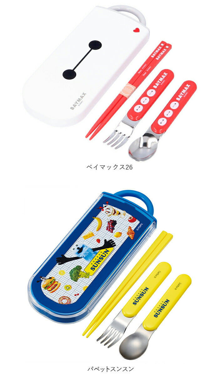 ・人気キャラクターの絵柄がかわいい!食洗機対応のキッズ向け、お箸・フォーク・スプーンとケースの3点トリオセットに新しい柄が仲間入り!
