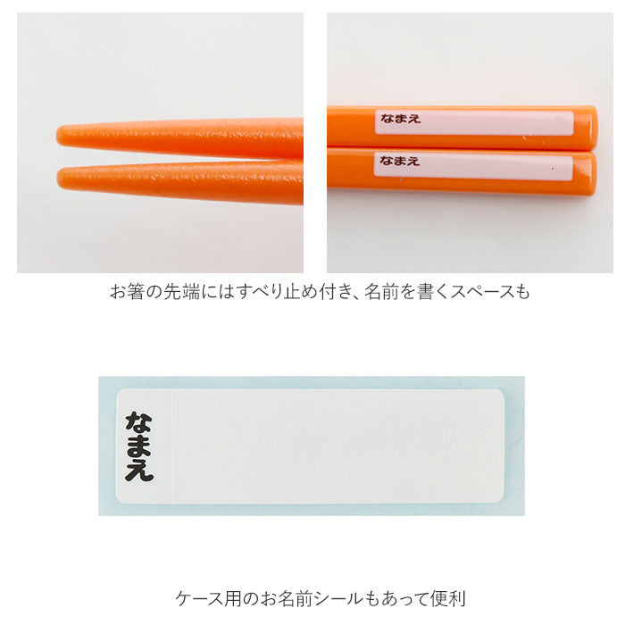 ・お箸には名前を書くスペースがあり、ケース用のお名前シールもあって便利。