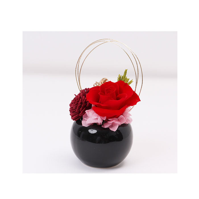 ・幅広い年代の方が楽しめる和風アレンジメント。ブラックカラーの陶器もおしゃれ♪