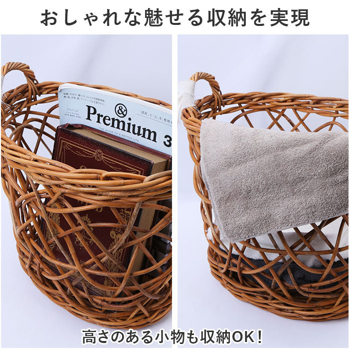 ・小物を入れてソファ横に置いたり、ランドリー収納に。置いておくだけでも絵になるバスケット。高さのある小物も収納OK!