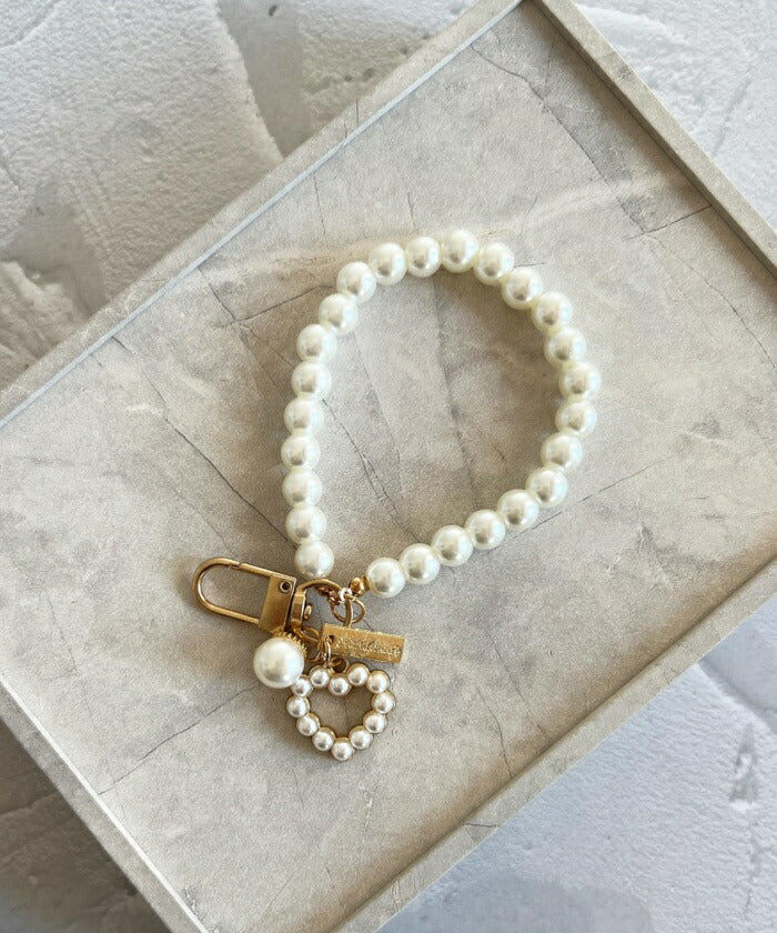 ・艶やかなパールビーズが連なったループに、ハートモチーフやゴールドチャームをあしらい、フェミニンで高級感のあるデザイン。
