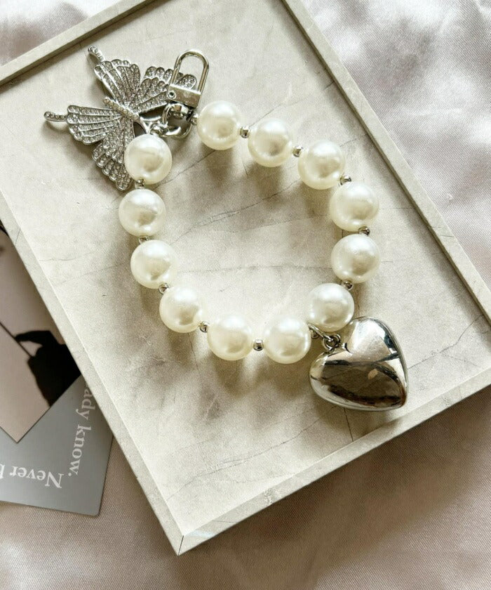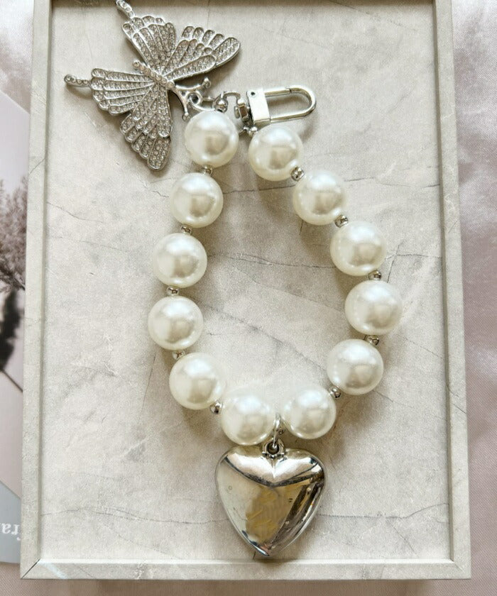 バッグチャーム 大人 おしゃれ 通販 キーチャーム スマホハンドストラップ バックチャーム キーホルダー ストラップ スマホ 手首 可愛い パール かわいい オシャレ ハート 蝶々 キラキラ