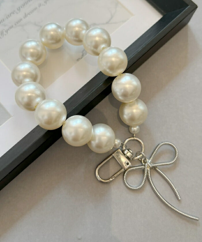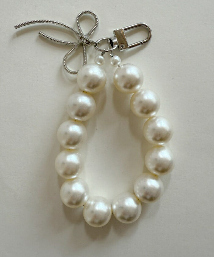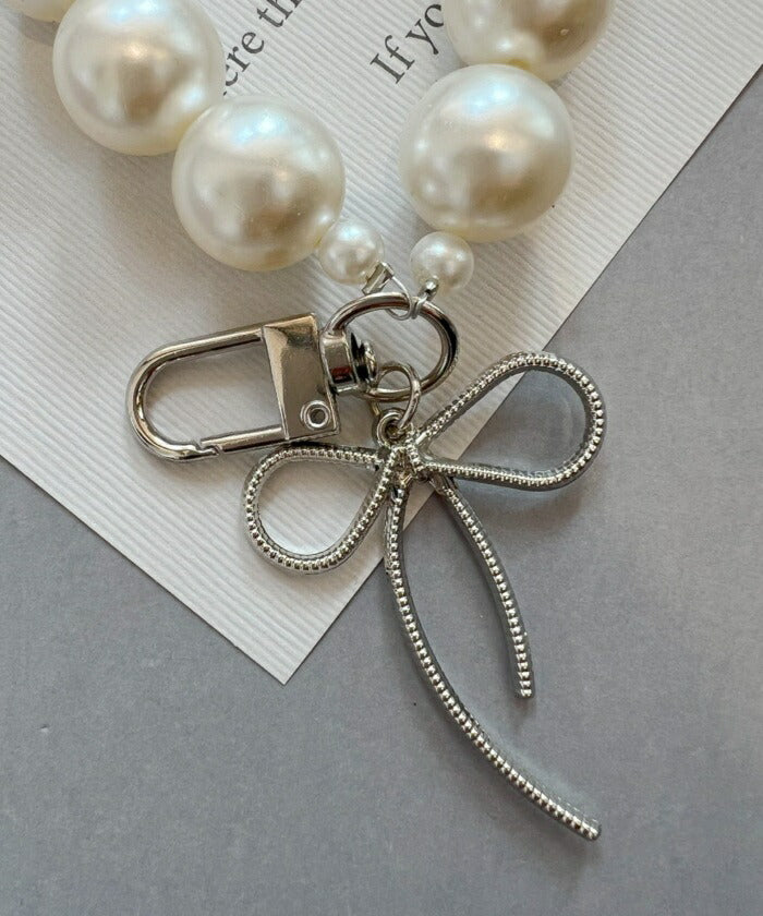 ・上品な艶を放つパール調ビーズに、華奢なリボンをあしらったチャーム。