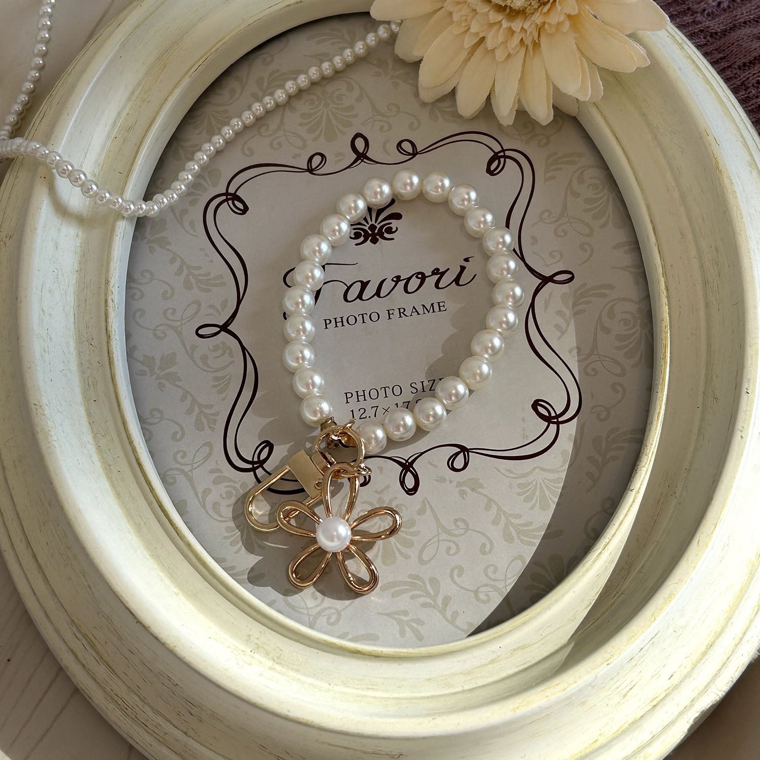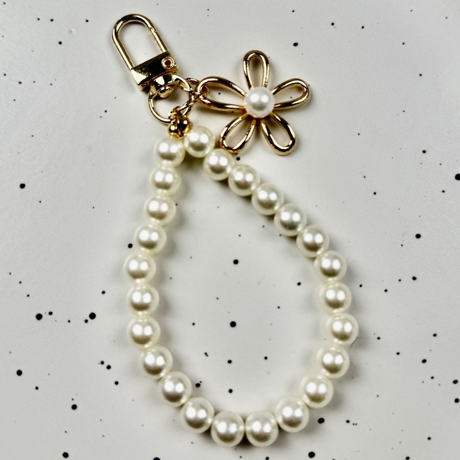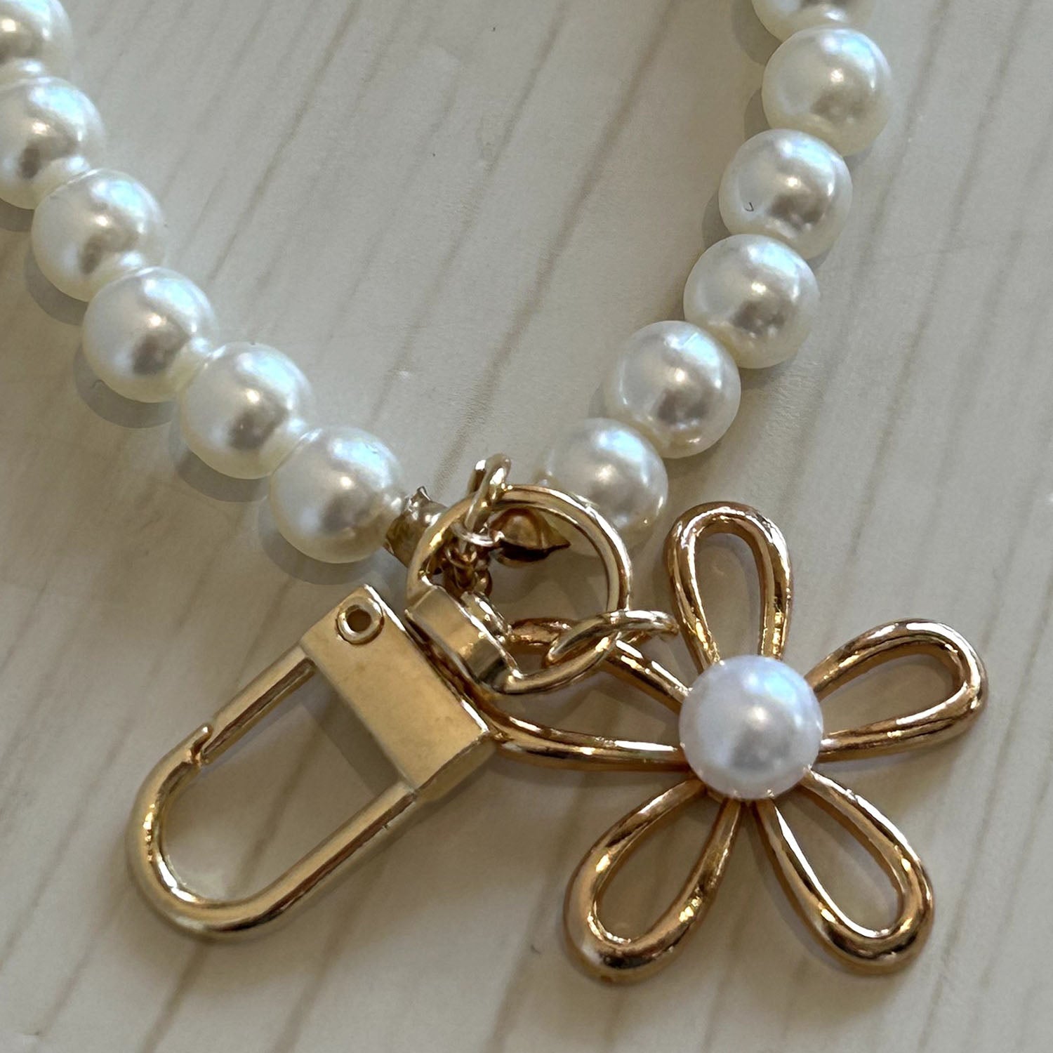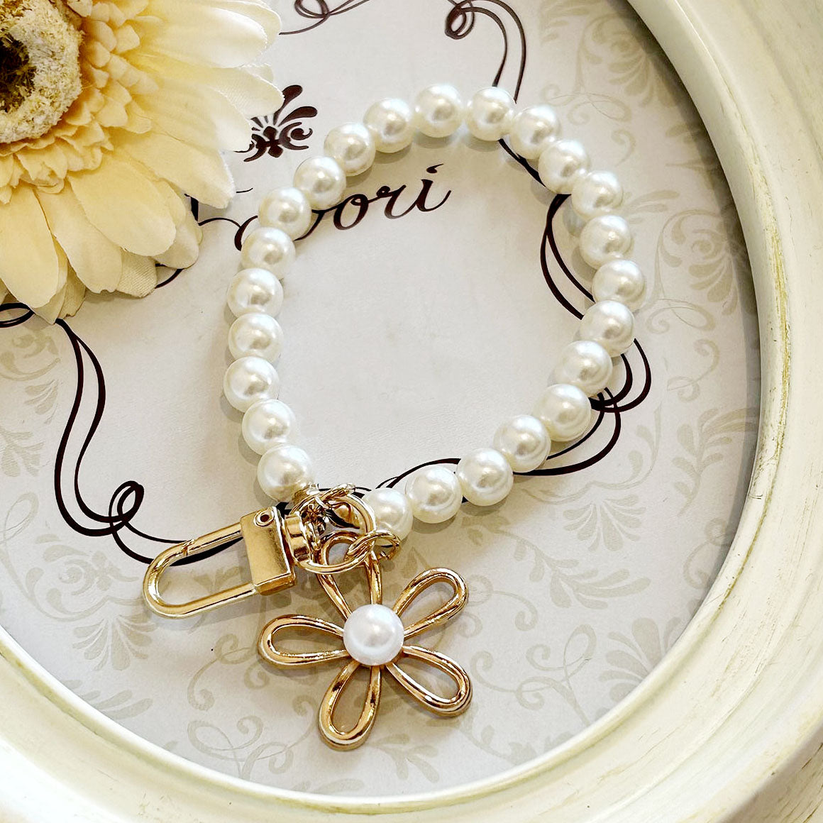・上品なホワイトパールに、華やかなゴールドフラワーモチーフを合わせたキーチャーム。