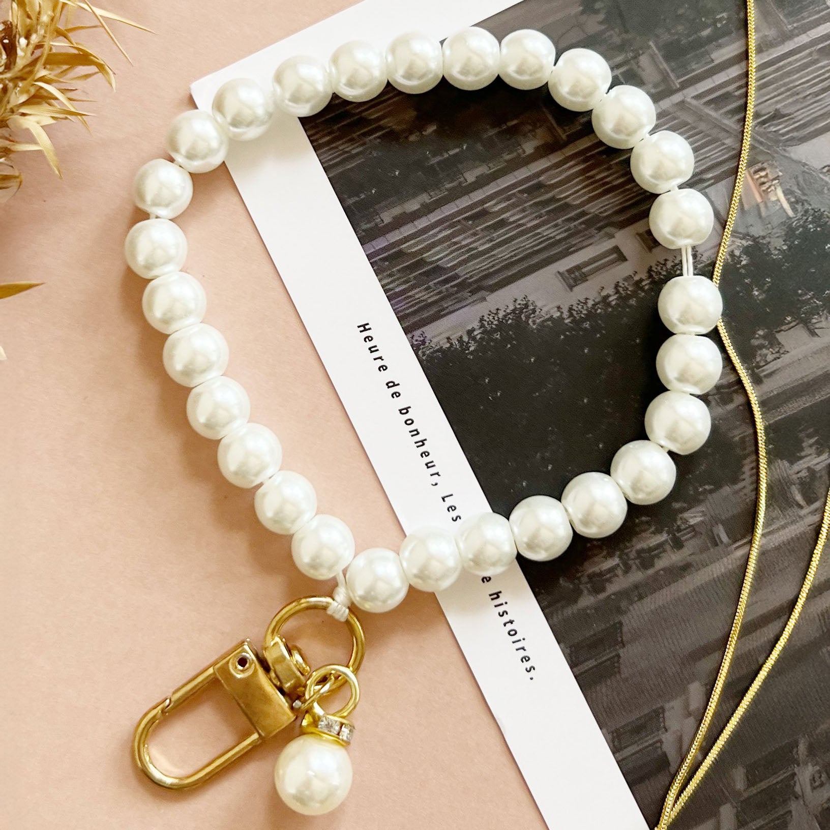 ・ゴールド金具に上品なパールを組み合わせたキーチャーム。
