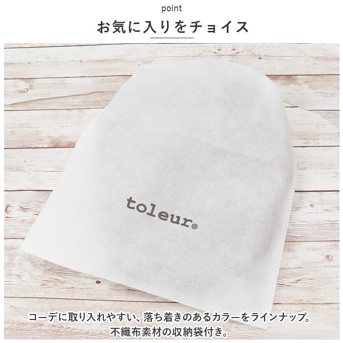 ・コーデに取り入れやすい、落ち着きのあるカラーをラインナップ。不織布素材の収納袋付き。