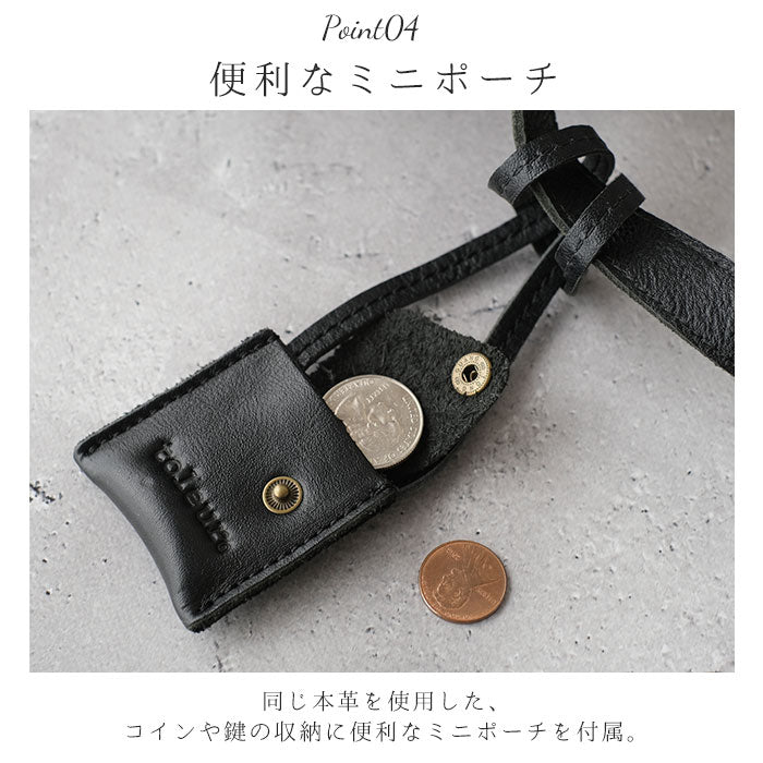 ・同じ本革を使用した、コインや鍵の収納に便利なミニポーチを付属。