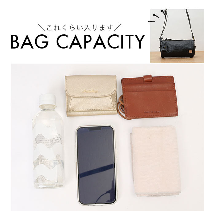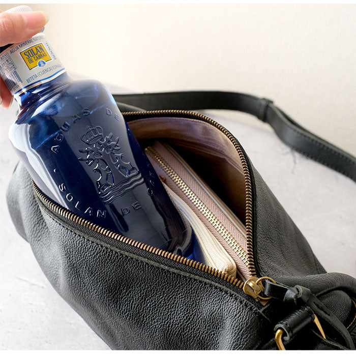 ・コンパクトな見た目ながら、お出かけに必要な荷物がすっきりまとめられるサイズ。長財布や500mlペットボトルも横向きに収納可能◎