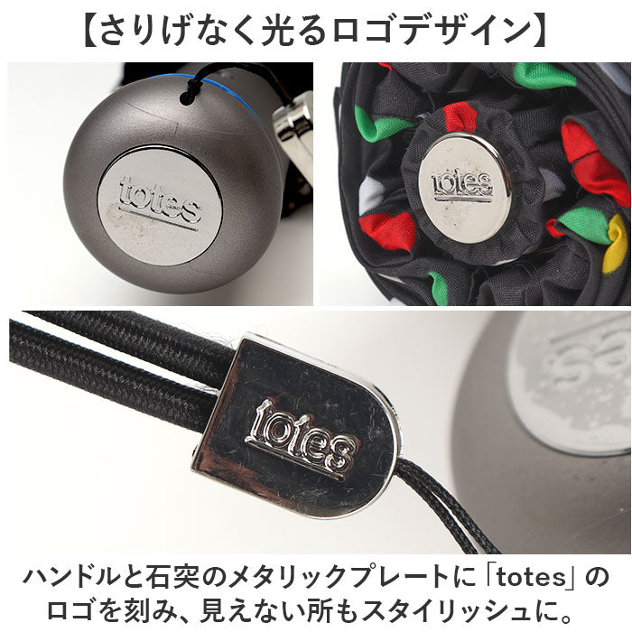 ・ハンドルと石突のメタリックプレートに「totes」のロゴを刻み、見えない所もスタイリッシュに。