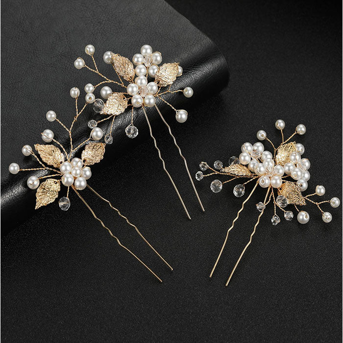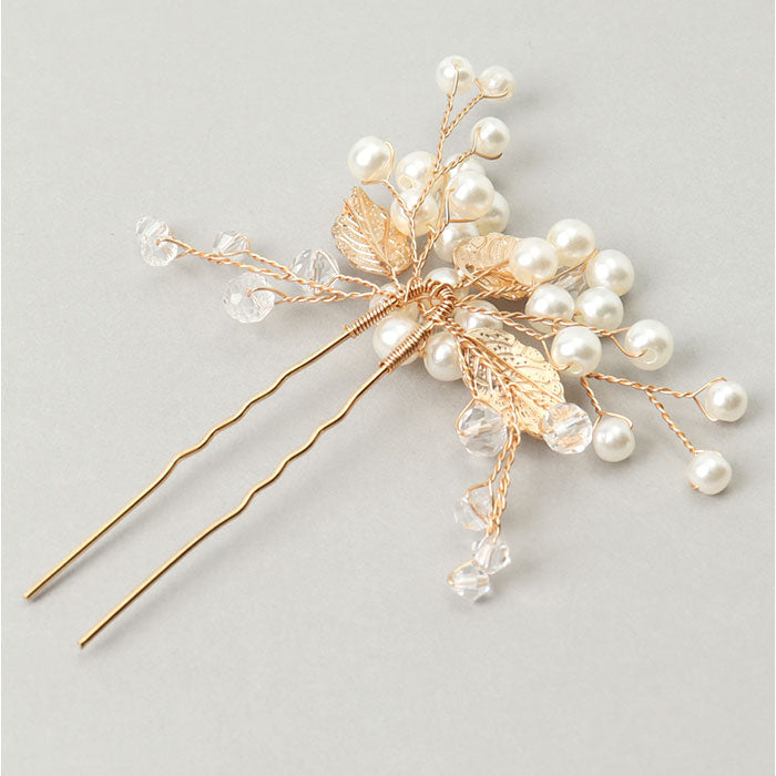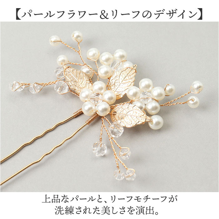 ・上品なパールと、リーフモチーフが洗練された美しさを演出。