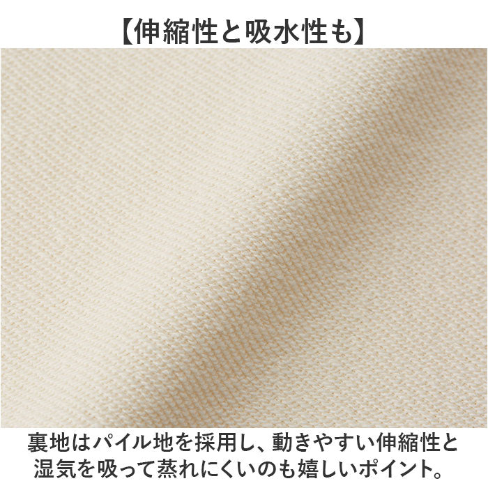 ・裏地はパイル地を採用し、動きやすい伸縮性と湿気を吸って蒸れにくいのも嬉しいポイント。