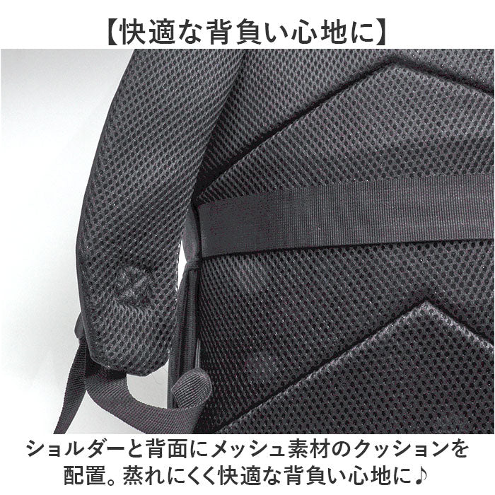 ・ショルダーと背面にメッシュ素材のクッションを配置。蒸れにくく快適な背負い心地に♪