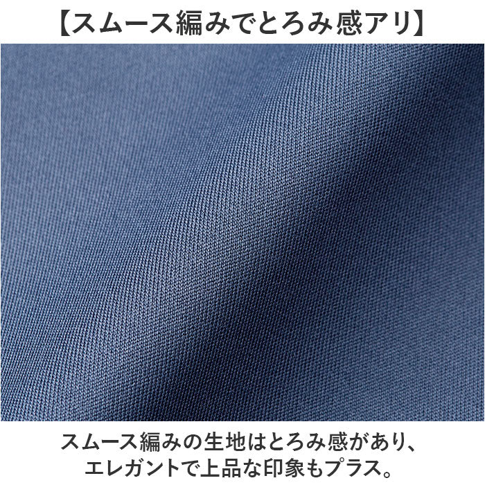 ・スムース編みの生地はとろみ感があり、エレガントで上品な印象もプラス。