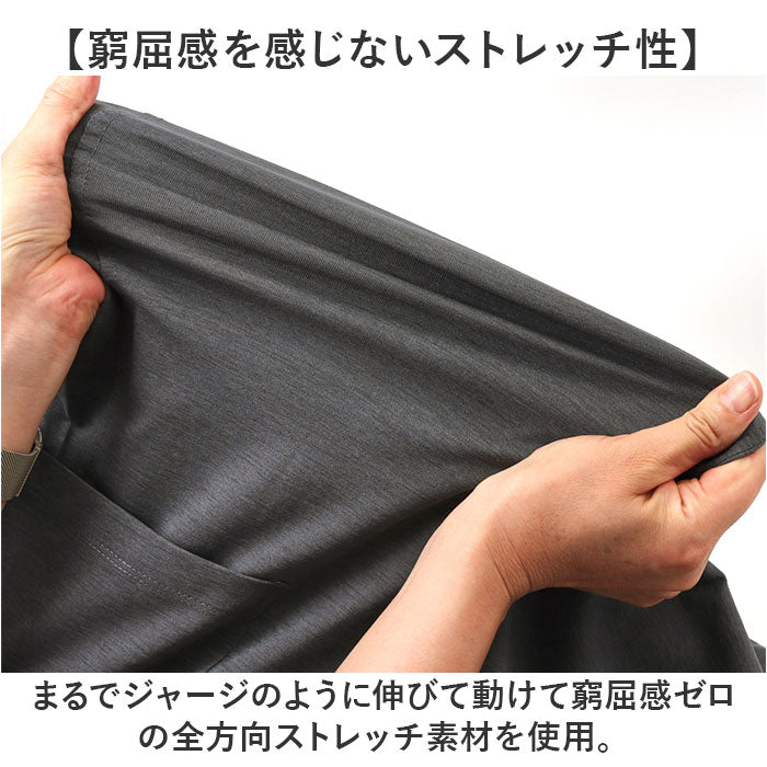 ・まるでジャージのように伸びて動けて窮屈感ゼロの全方向ストレッチ素材を使用。