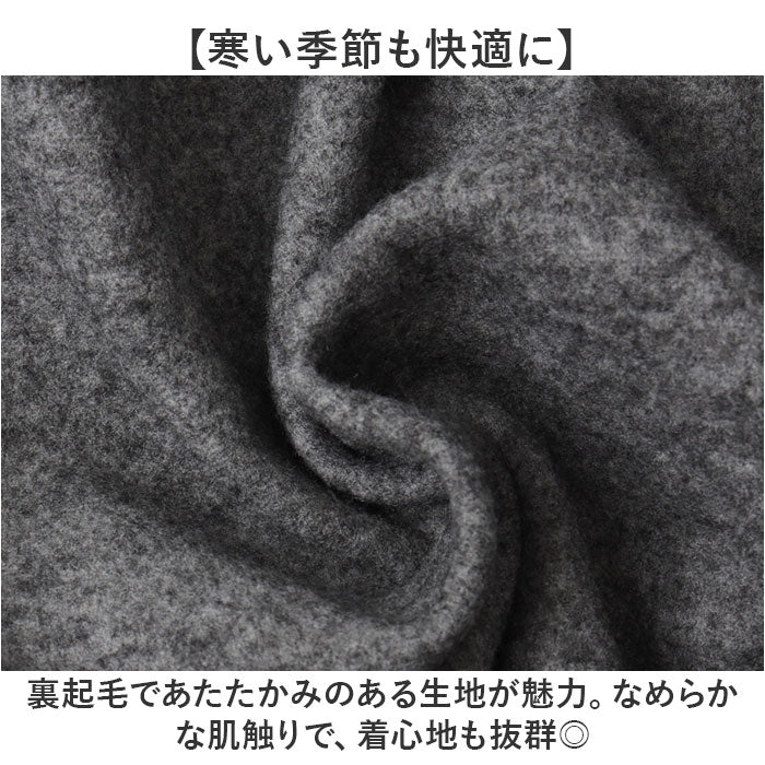 ・裏起毛であたたかみのある生地が魅力。なめらかな肌触りで、着心地や穿き心地も抜群◎