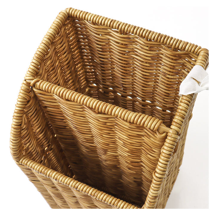 ・ポリプロピレンとポリエチレンを使って手編み。生活感が出にくく置いておくだけでサマになる!
