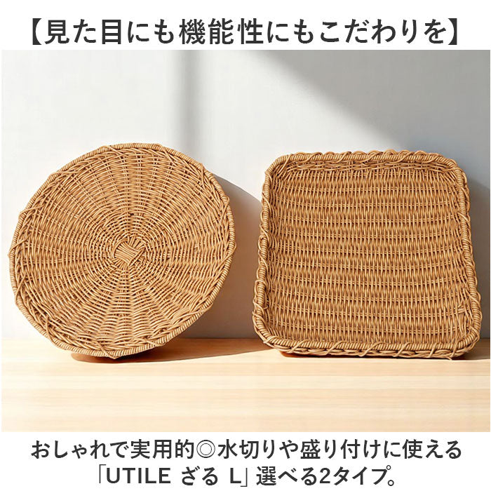 UTILE ユティル ざる Lサイズ 通販 水切りかご 水切りカゴ 水切り ザル 食器 野菜 果物 麺 蕎麦 盛り付け 盆ざる 平ザル 洗えるバスケット お盆 トレー トレイ ユティルナイール Creer