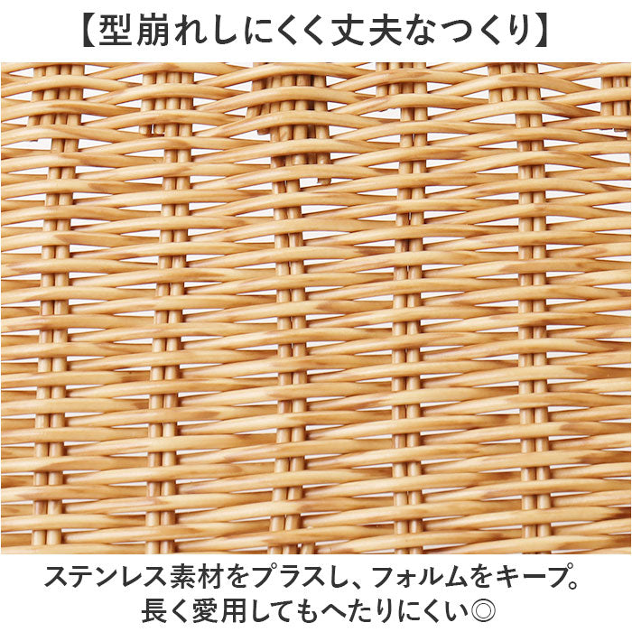 ・ポリプロピレンとポリエチレンを使って手編み。生活感が出にくく置いておくだけでサマになる!