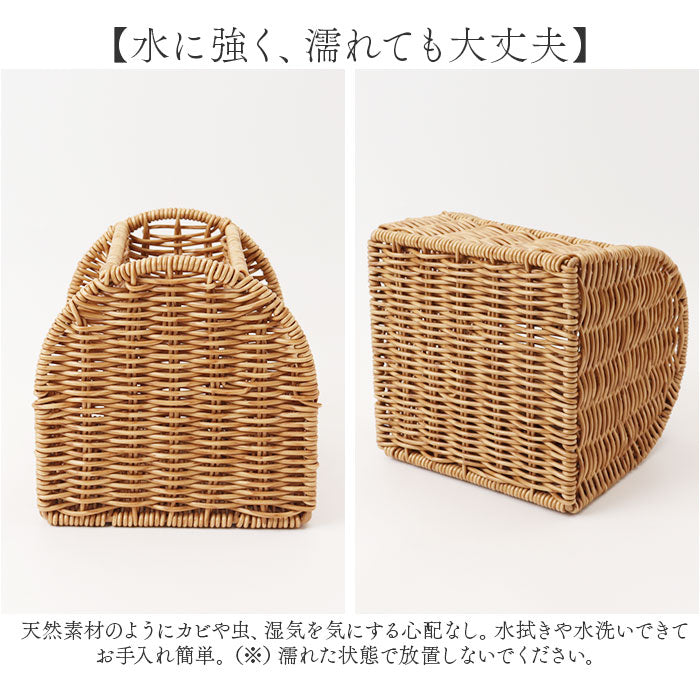 ・ポリプロピレンとポリエチレンを使って手編み。生活感が出にくく置いておくだけでサマになる!