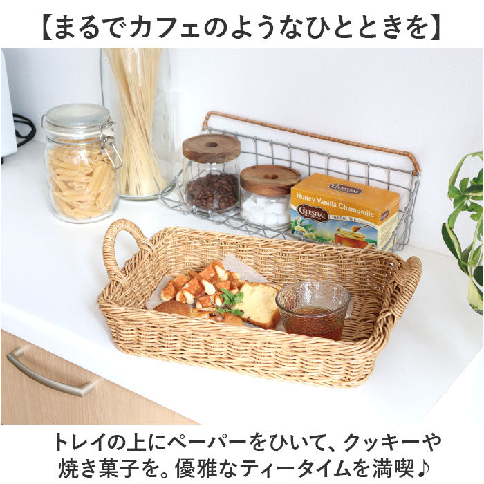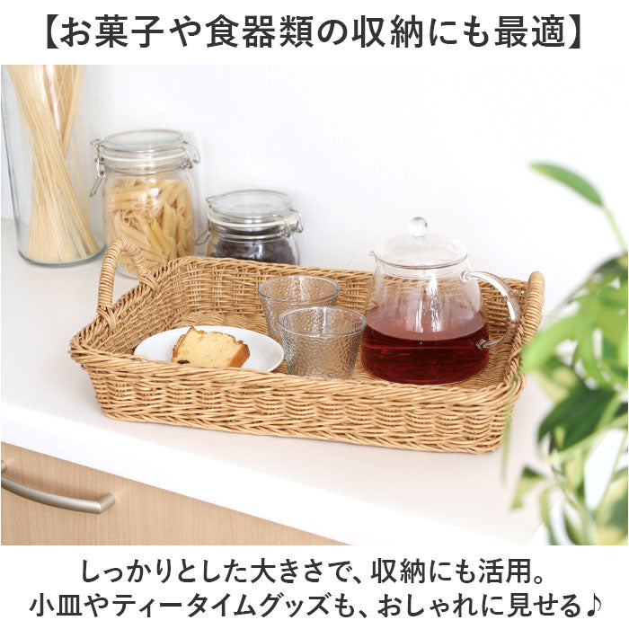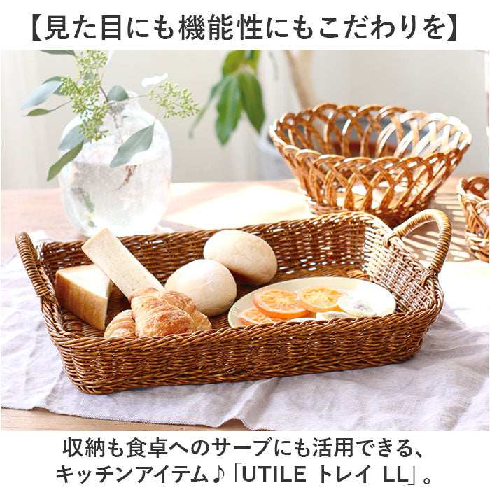 UTILE 洗えるバスケット バスケット トレー 通販 トレイ お盆 かご カゴ 籠 ざる ザル 台所 キッチン 整理 収納 ハンドル付き 収納トレー 収納トレイ ナチュラル 北欧 シンプル PPラタン