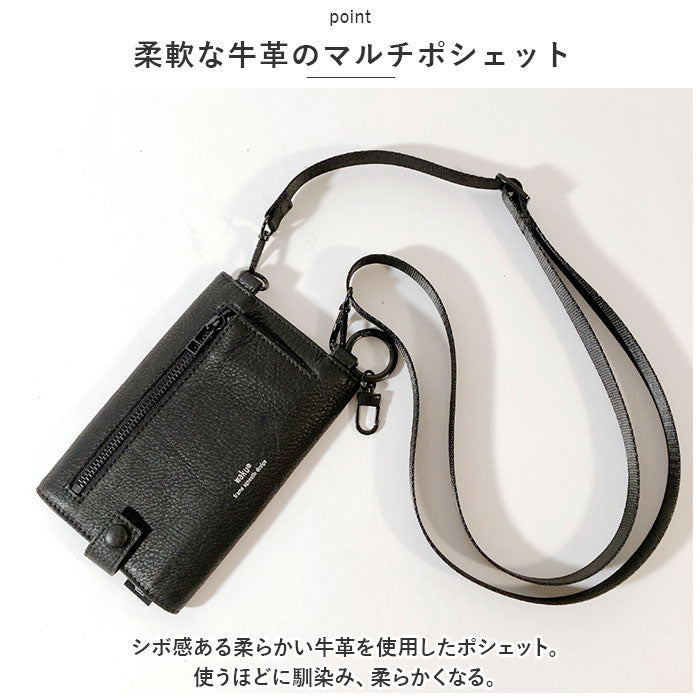 ・シボ感ある柔らかい牛革を使用したポシェット。使うほどに馴染み、柔らかくなる。