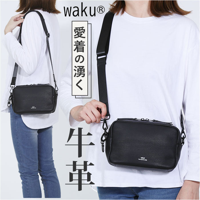 WAKU ワク ショルダーバッグ ミニ wk0085 通販 ショルダー ショルダーバック 肩掛け 斜め掛け ミニショルダーバッグ ミニショルダー ポシェット 小さめ 小さい 本革 スクエア 長方形 マチ