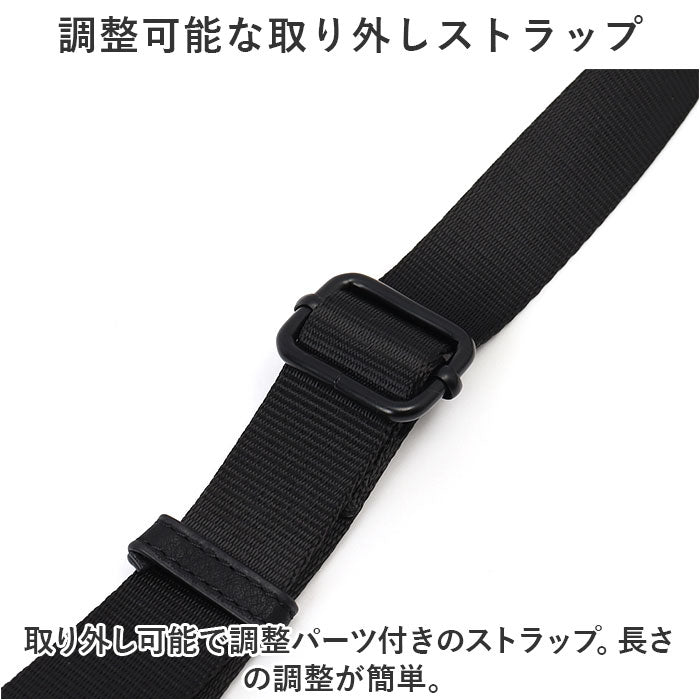 ・取り外し可能で調整パーツ付きのストラップ。長さの調整が簡単。