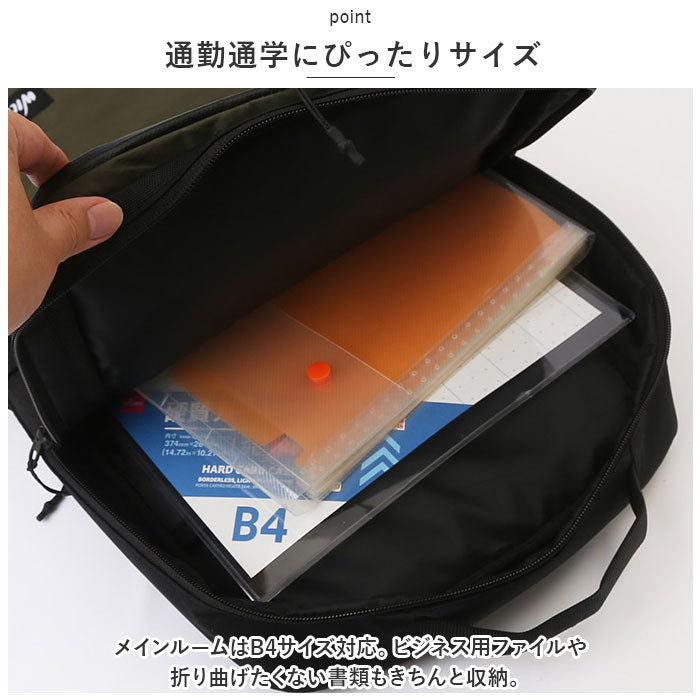 ・メインルームはB4サイズ対応。ビジネス用ファイルや折り曲げたくない書類もきちんと収納。