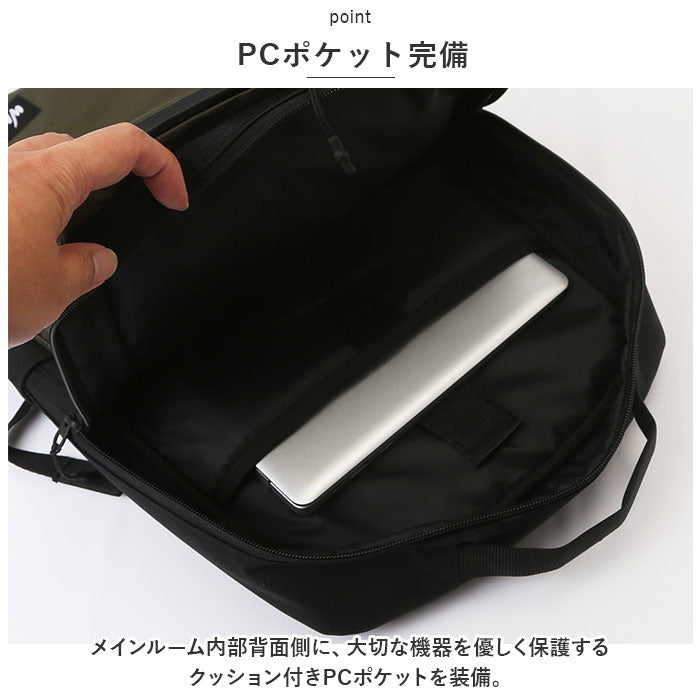 ・メインルーム内部背面側に、大切な機器を優しく保護するクッション付きPCポケットを装備。
