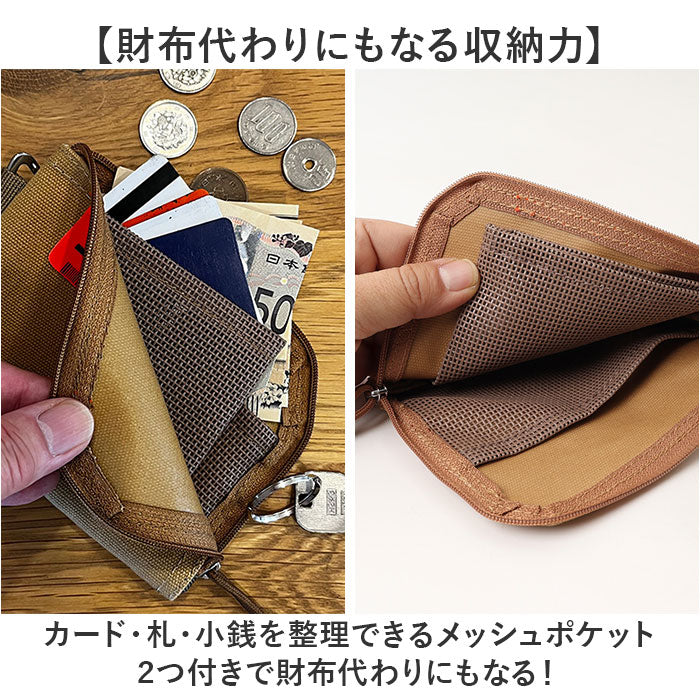 ・カード・札・小銭を整理できるメッシュポケット2つ付きで財布代わりにもなる!