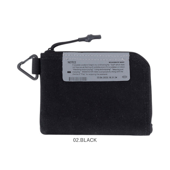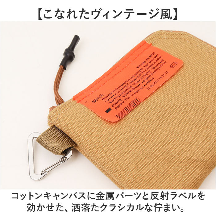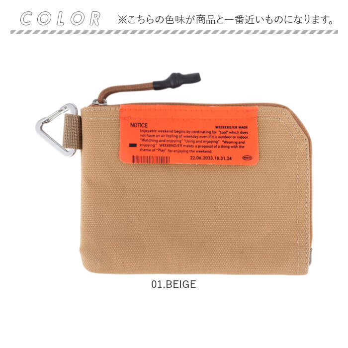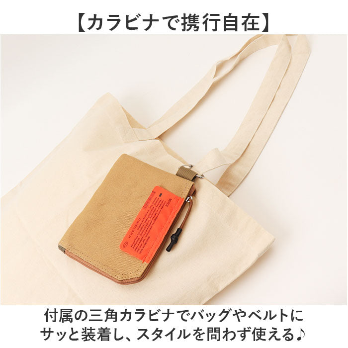 ・L字開きのコットンキャンバス製マルチケース。カラビナ付きで財布としても活躍!