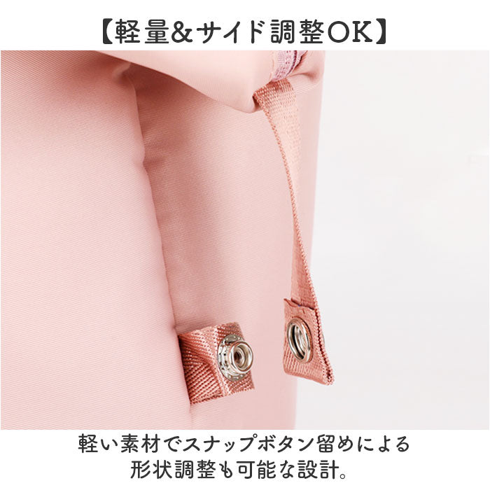 ・軽い素材でスナップボタン留めによる形状調整も可能な設計。