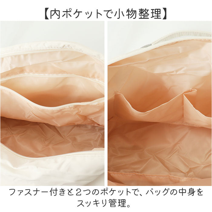 ・ファスナー付きと2つのポケットで、バッグの中身をスッキリ管理。