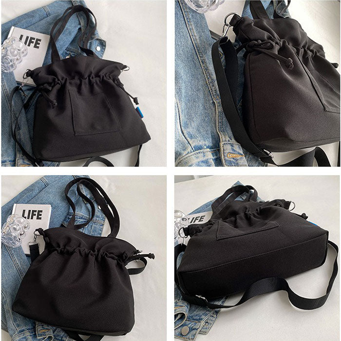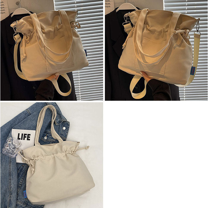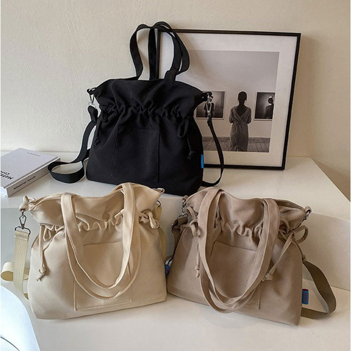 ・毎日のお出かけがもっと軽やかになる巾着デザインのキャンバスバッグ。