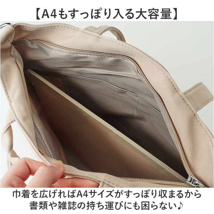 ・巾着を広げればA4サイズがすっぽり収まるから書類や雑誌の持ち運びにも困らない♪