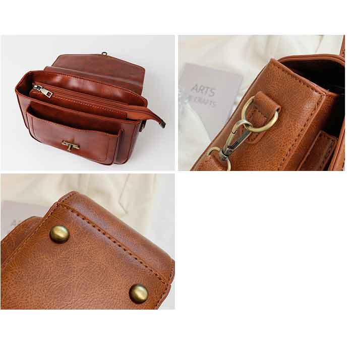 ・アンティーク調の留め金具が、レトロな雰囲気を演出するデザイン。