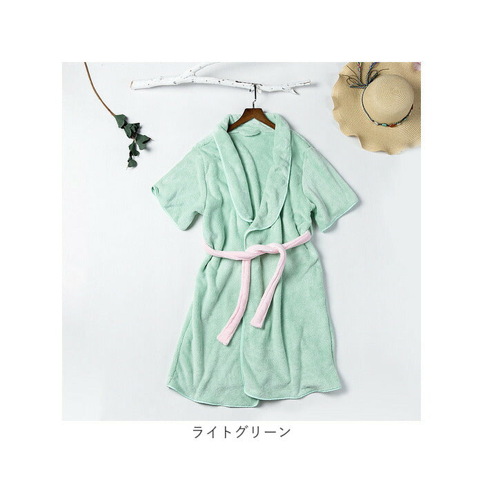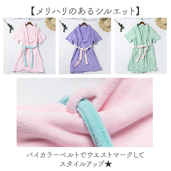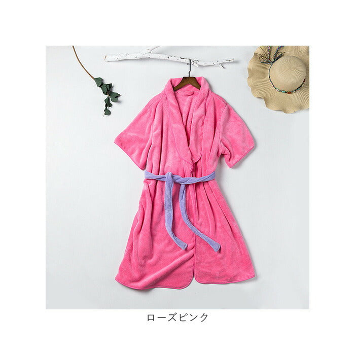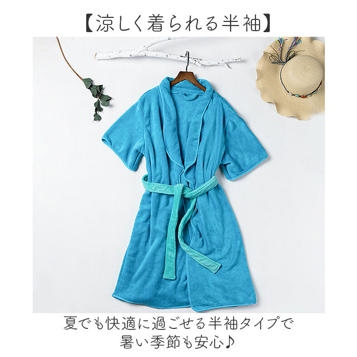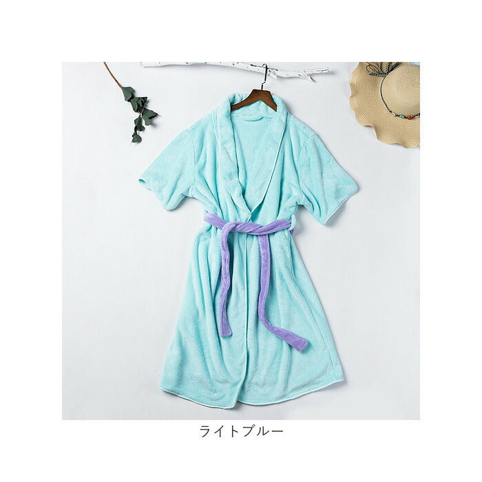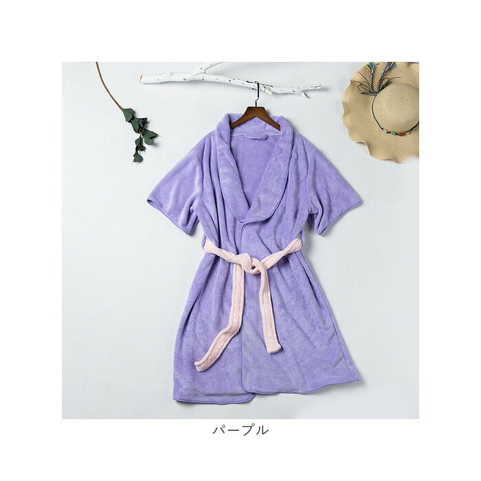 バスローブ 半袖 マイクロファイバー 通販 ナイトウェア ルームウェア 部屋着 ガウン 吸水タオル 吸水 速乾 風呂上り お風呂上り やわらかい 柔らかい 湯上り 着 ふわふわ フワフワ