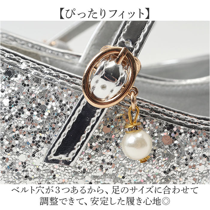 ・キラキラ輝くグリッターで特別な日を演出するパンプス。