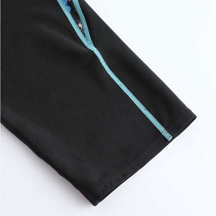 ・ワンピース仕様でめくれる心配がなく激しいキックやターンでも集中力が途切れない構造!