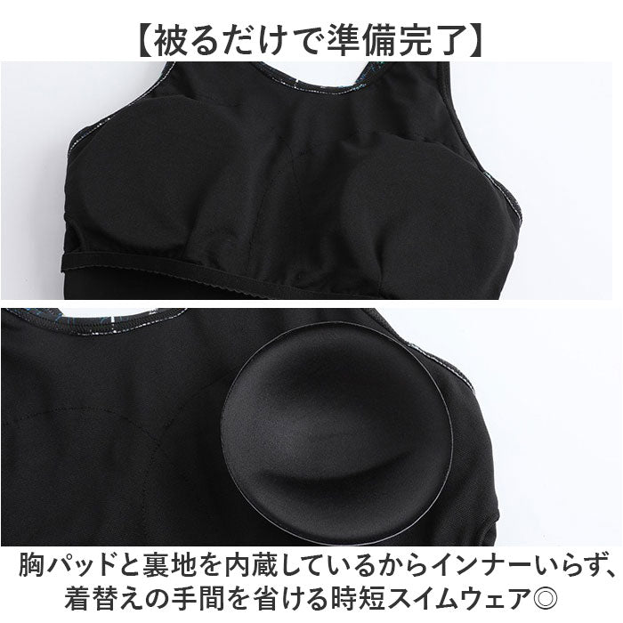 ・胸パッドと裏地を内蔵しているからインナーいらず、着替えの手間を省ける時短スイムウェア◎