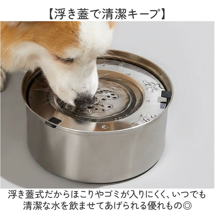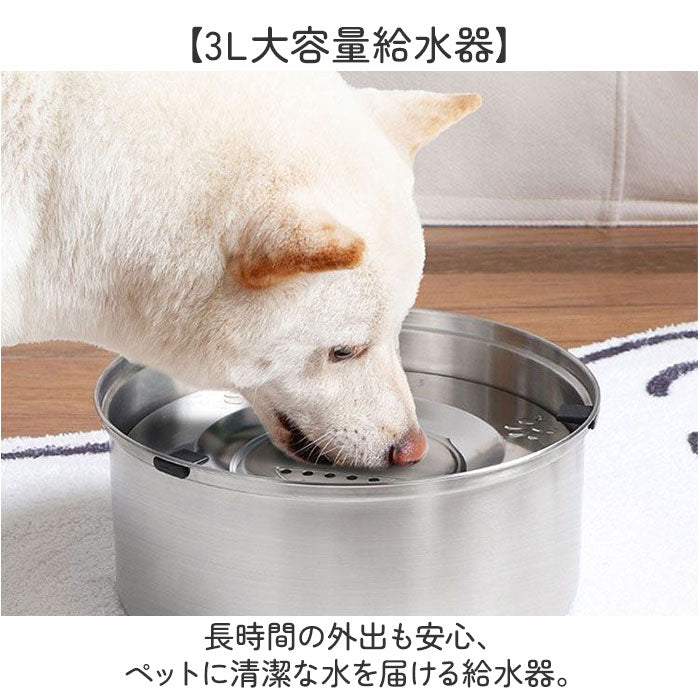 水飲み器 給水器 3L 大容量 通販 ボウル 食器 水入れ 水飲み 浮き蓋式 浮き蓋 犬用食器 犬用 猫用食器 猫用 水やり用品 ステンレス製 ステンレス 犬 いぬ イヌ 猫 ネコ ねこ シンプル