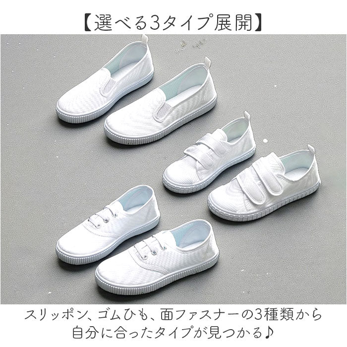 ・スリッポン、ゴムひも、面ファスナーの3種類から自分に合ったタイプが見つかる便利さ♪